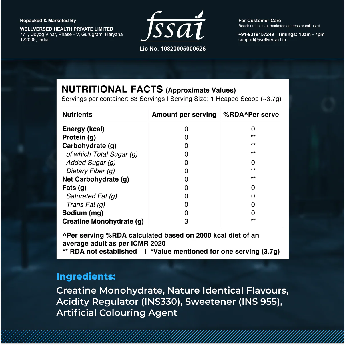 Wellcore - Pure Micronised Creatine Monohydrate | Kiwi Kick (307g, 83 servings)